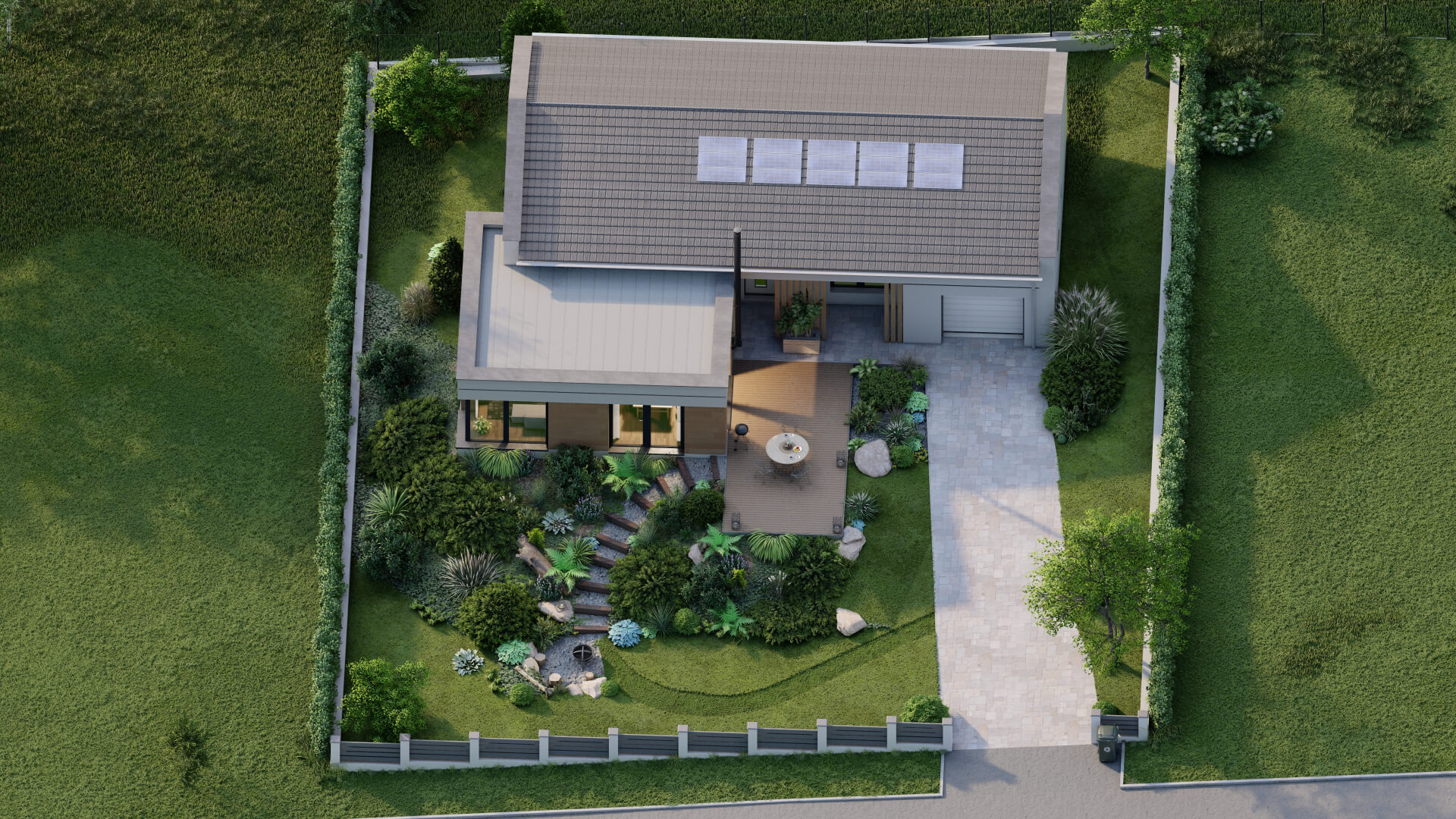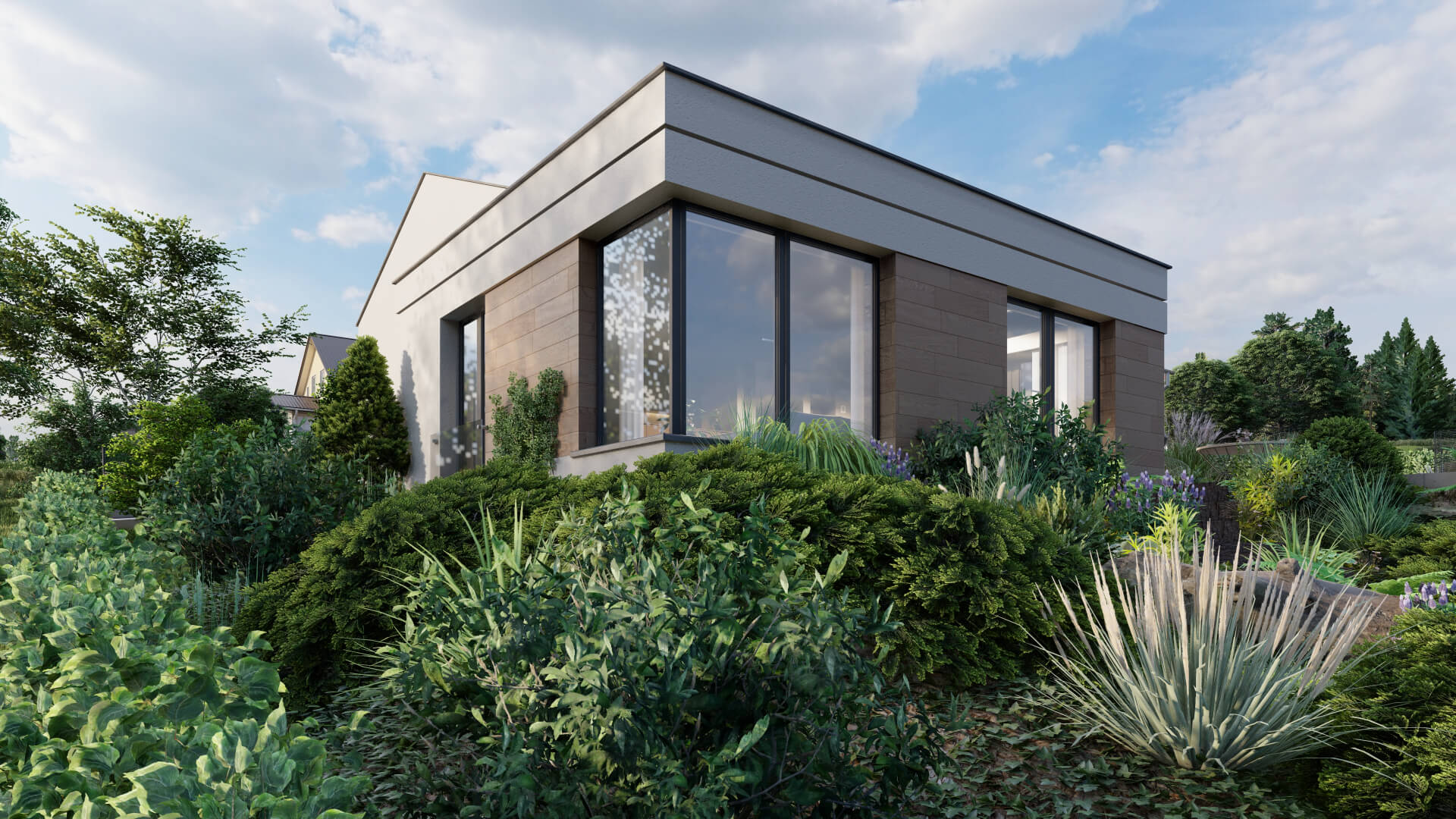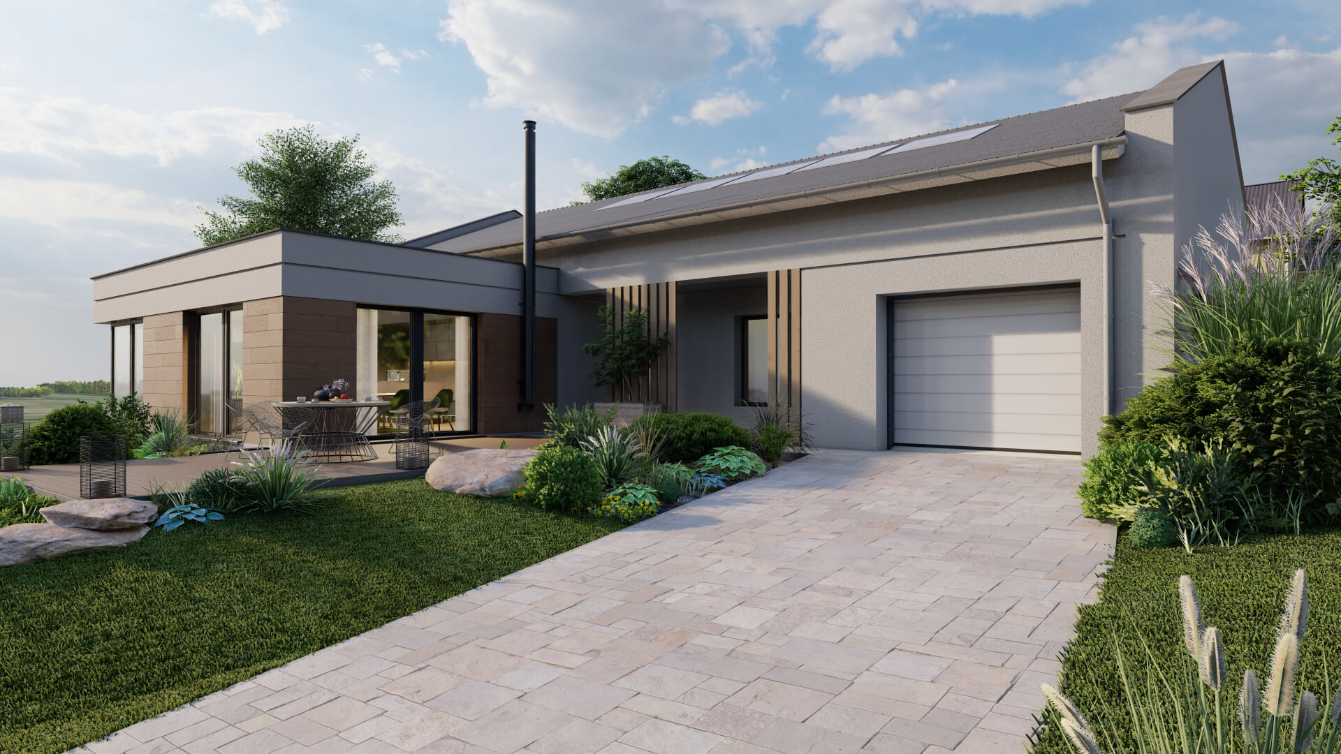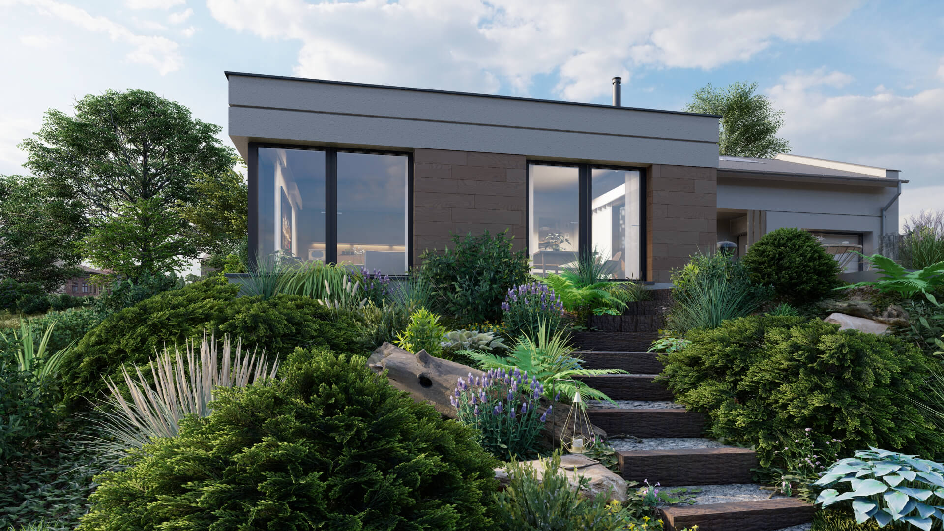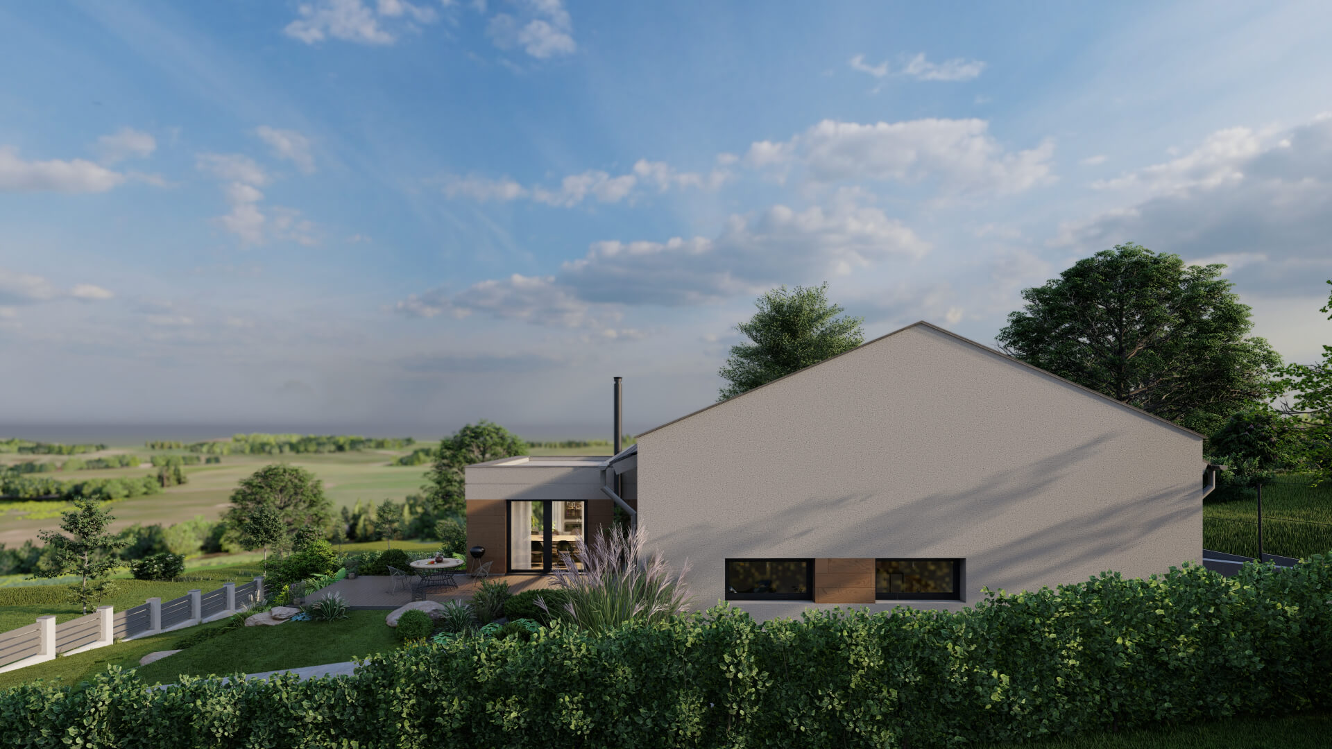Zděný dům s detailně promyšleným a praktickým řešením, 4+kk, garáží a zahradou 814 m², podlahová plocha 167 m², moderní design a trendové vybavení.