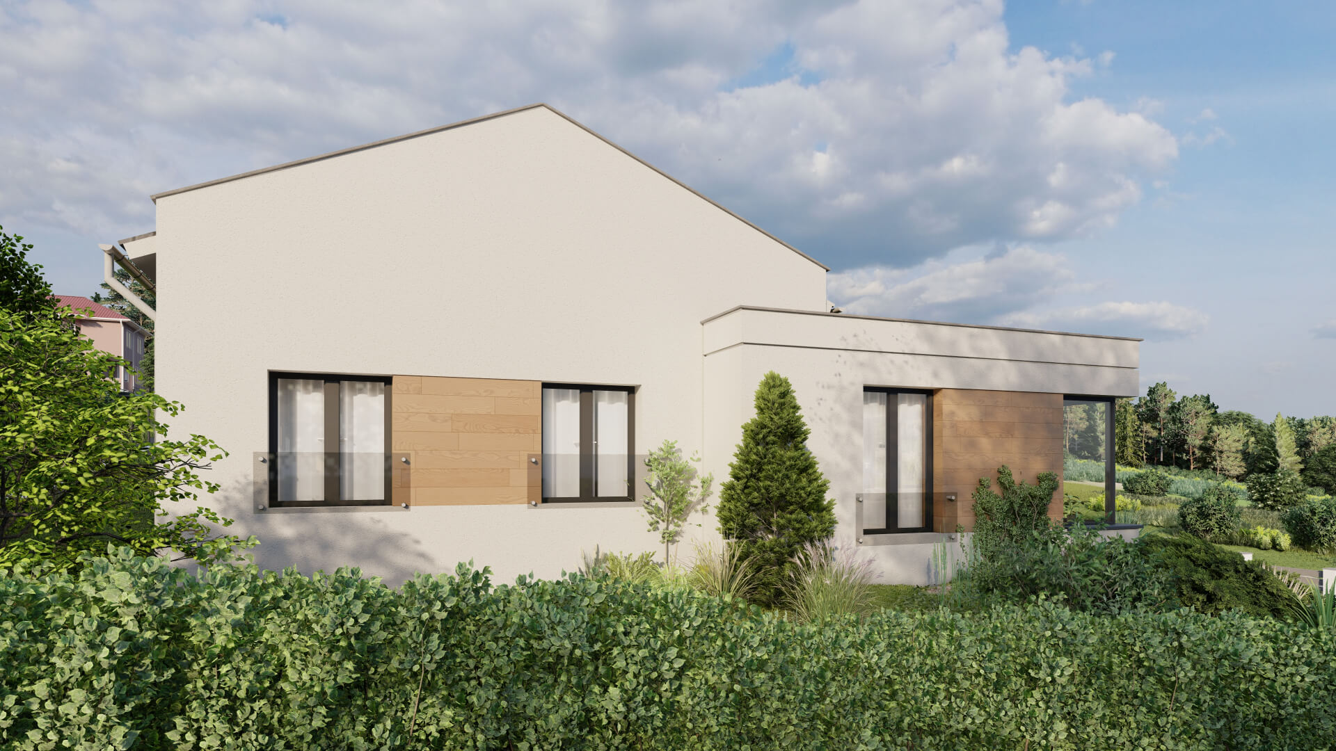 Jedná se o projekt rodinného domu v obci Divišov, cca 40 km od Prahy, promyšlený s velmi praktickým řešením, dispozice 4+kk s garáží nabídne bezmála 170m2 podlahové plochy na pozemku o rozloze 814m2.